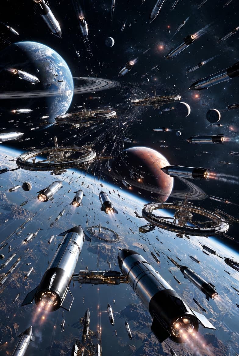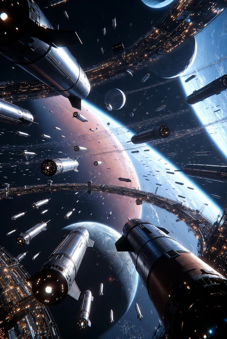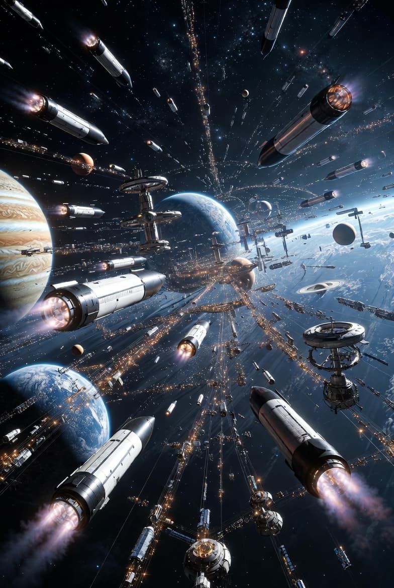 Orbital & Aerial Complement: Rings of habitats or floating platforms in the upper atmosphere (using leftover gas for buoyancy if desired). Space elevators or orbital rings connect surface to orbit.