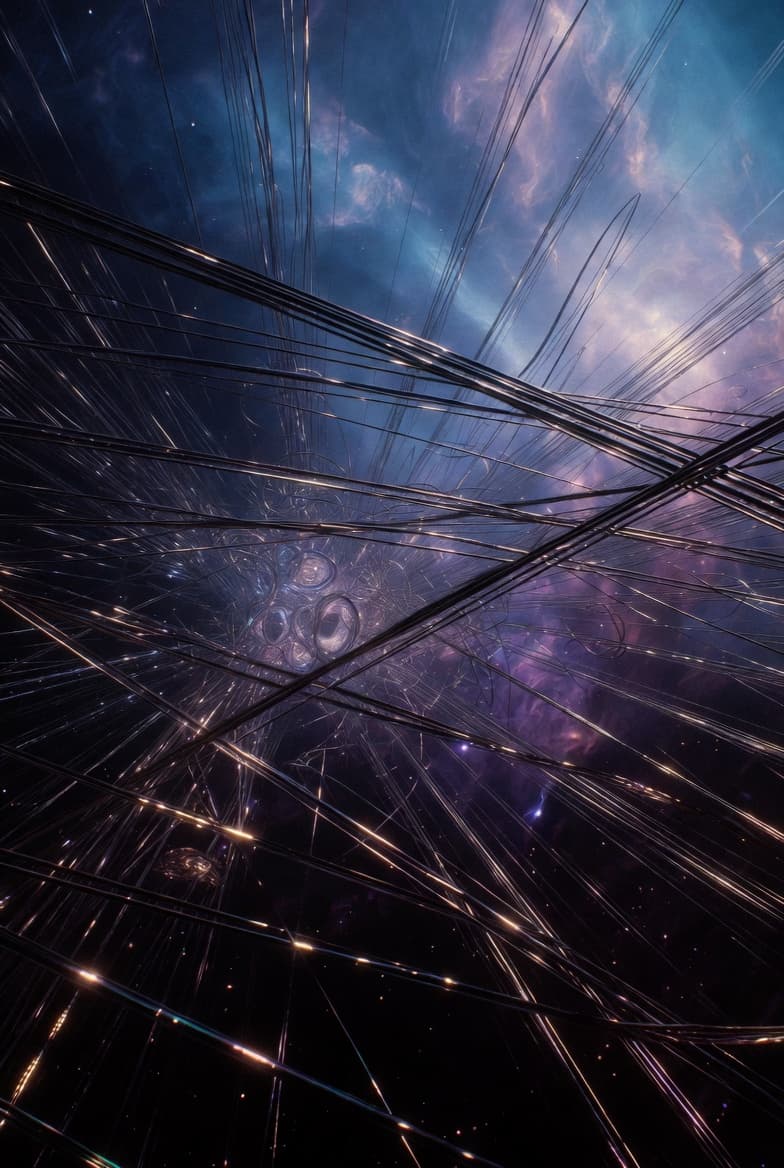 In the context of string theory—a theoretical framework in physics aiming to unify quantum mechanics and general relativity—"encoding matter as strings" refers to the idea that all fundamental particles and forms of matter are not point-like entities (as in standard particle physics) but rather manifestations of tiny, one-dimensional vibrating "strings." These strings are the most basic building blocks of the universe, vibrating in higher dimensions (typically 10 or 11 in string theory variants like M-theory) at different frequencies and modes to produce what we observe as different particles, such as electrons, quarks, photons, or even gravitons (the hypothetical carriers of gravity).